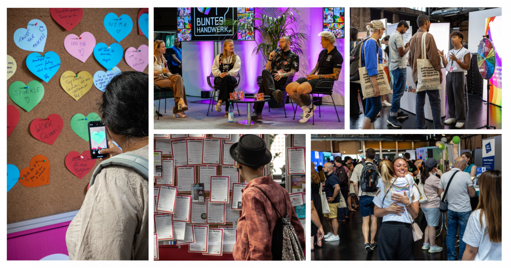 Triff spannende Unternehmen, entdecke neue Perspektiven und erlebe ein vielseitiges Programm mit inspirierenden Talks, ehrlichen Einblicken und praktischen Tipps rund um das Thema LGBTIQ+ im Berufsleben.
